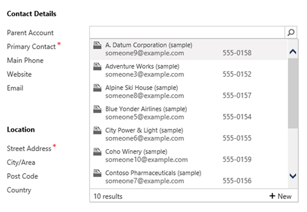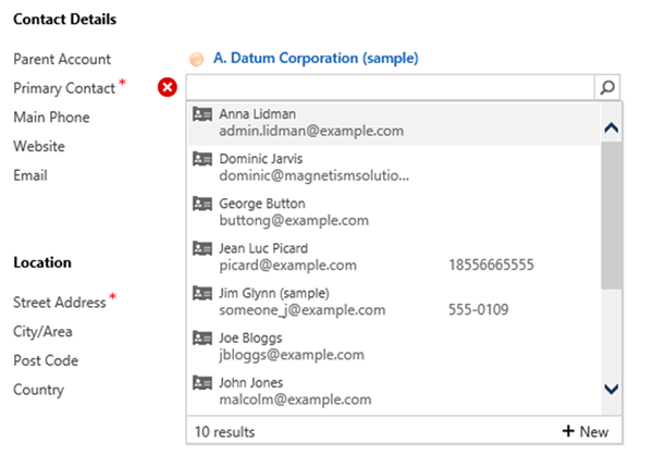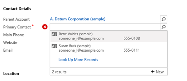 The point of difference here lies in the fact that we are using a different view. With lookup fields, the first three fields from a view are displayed on the retrieved data, which allows you to more minutely customise the data that is displayed to the customer, giving them more relevant information to make their selection with.
