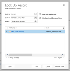 As shown above, only contacts associated to A. Datum are available. This is just a simple use case, and there are more filtering options available.
