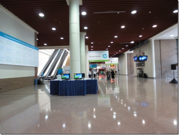 Next its off to the Convention Centre to register and pick up the goodies. Another laptop bag and the essential agenda material. “Where is the Microsoft Surface Pro”, we ask the attendant at the materials collection counter. Blank face. Don’t think she got the joke.