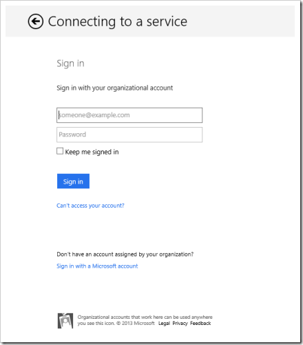 Once the URL has been accepted by the MoCA then you will need to add your CRM 2013 user credentials for the CRM 2013 instance in the screen below.