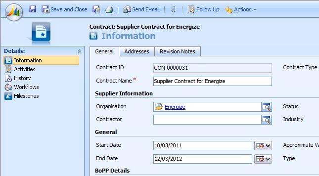 Supplier Contract Management – this allows for the management of supplier contracts including, singing authority origination rules, and rating of contractors, milestone reviews and payments as well as document management with SharePoint.