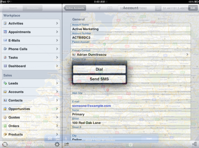 As you see from the screen shots below the iPad is displaying a rich client, including dashboards and map integration (Googly Maps are the supported mapping tool at this time as it runs native on Apple devices) also note that there is a strong resemblance to CWR Mobility with these applications. However we still expect the CWR Team to continue development on their products.