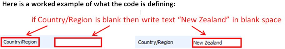 Throughout this section of the blog the images will relate to the application of this process to pre-populate the Country/Region field with text “New Zealand”.