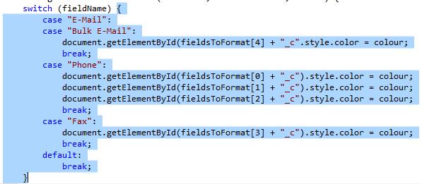 Your code is no longer presenting any errors, but it’s still not working properly as E-mail is not having its colour changed as it should. From here the CRM alerts stop, and you’re on your own trying to work out what’s gone wrong. This is where things start getting a little trickier!