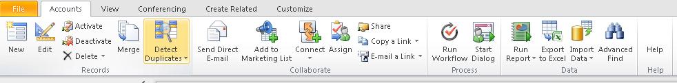 This is yet another tab that makes it a whole lot easier to work with your CRM data. This allows you to attach files or notes to the Account you are working with, create a number of different activities related to the Account, and also perform other marketing actions such as mail merge and the creation of campaigns.