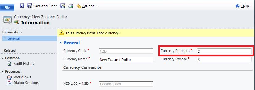 4. Change the Currency Precision value to a number between 0 and 4.