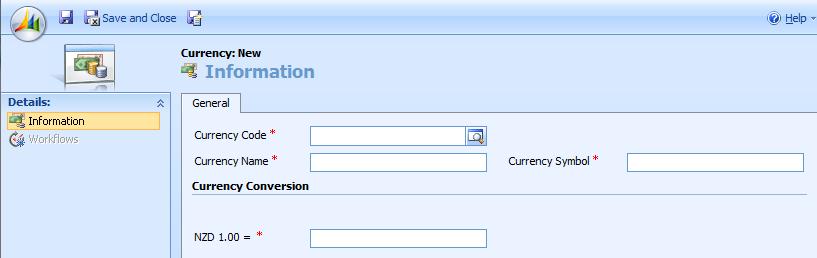Dynamics CRM 4.0 allowed you to use what are called “system currencies”. This means that when you are creating a new currency in the system, you are required to select the Currency Code from a list of currencies that are supplied upon installation of CRM and then specify a name and symbol for the currency and define the exchange rate.