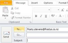 Now we can tell that the e-mail address is clickable just by looking at it. When we click on the e-mail address, it pops up Microsoft Outlook and prefills the To field and we are ready to send an e-mail to the Contact.