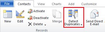 Microsoft Dynamics CRM 2011 ships with a powerful duplicate detection engine. This means that Users can use the default duplicate detection rules in the system to ensure that any of the common record types are free of duplicates. Common record types with built-in duplicate detection rules include Accounts, Contacts, and Leads. Users can also define their own duplicate detection rules and let the system provide options on how to clean up duplicate records. Click here to find out more about duplicate detection.
