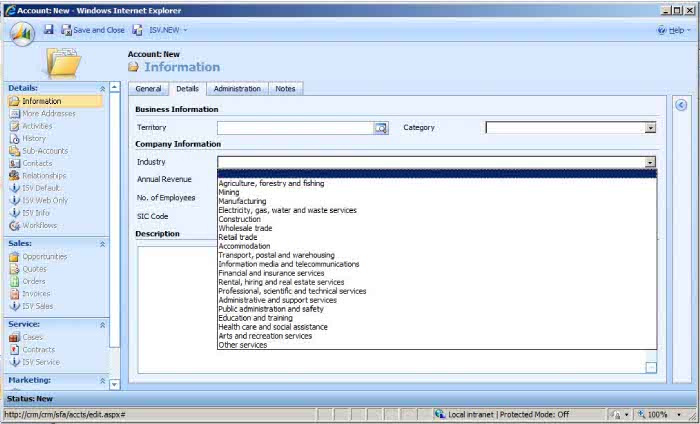 Next I went and removed some unneeded fields and reorder as I saw fit to make input of data more pain free. One of the biggest things I did was on the account form I removed all the items on the industry list and changed it out for a list according to Stats NZ.