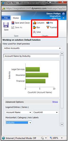 You may have read in another post I have written, that in CRM 2011 any user now has the ability to create dashboards to display all the data that they would use every day and make looking at multiple entities/records at one time easier. But this isn’t the only way that you can create a dashboard graph. All Dynamics CRM entities can have their own individual graphs that you can use in dashboards or just as a visual aid when you are looking at all the records in a grid.