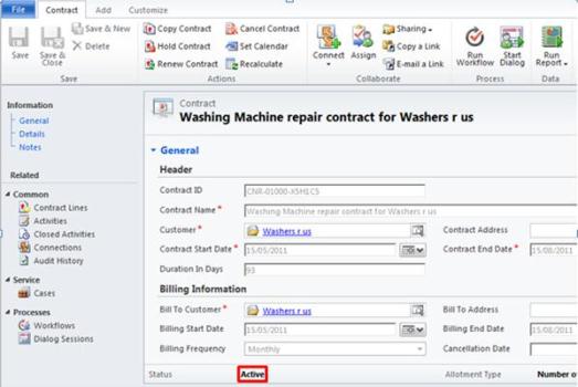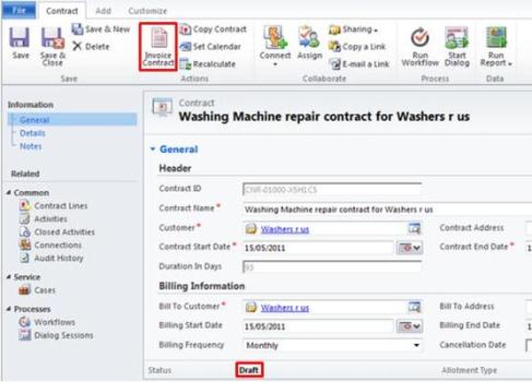 In Dynamics CRM 2011, you can only invoice contacts that are in a draft state. After that draft contract has been activated and invoiced it becomes read only and you can no longer edit it. You would only activate and invoice a contract after the customer has confirmed/agreed to the terms of the contract. Using our previous example of the washing machine repair contract you would only invoice the contract once that customer has agreed to it/signed the written contract.