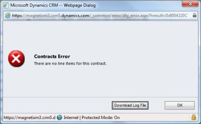 NOTE: If you try to invoice and activate a contract that has no contract lines you will receive the following error: