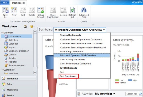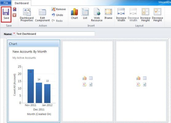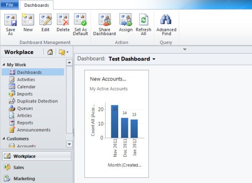 Now let have a look, now go back to your CRM 2011 Dashboard page, select the Dashboard we just created.