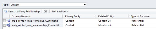 There is a Contact look up field on “Membership” form. Hence, there is a 1:N relationship in Contact Entity.